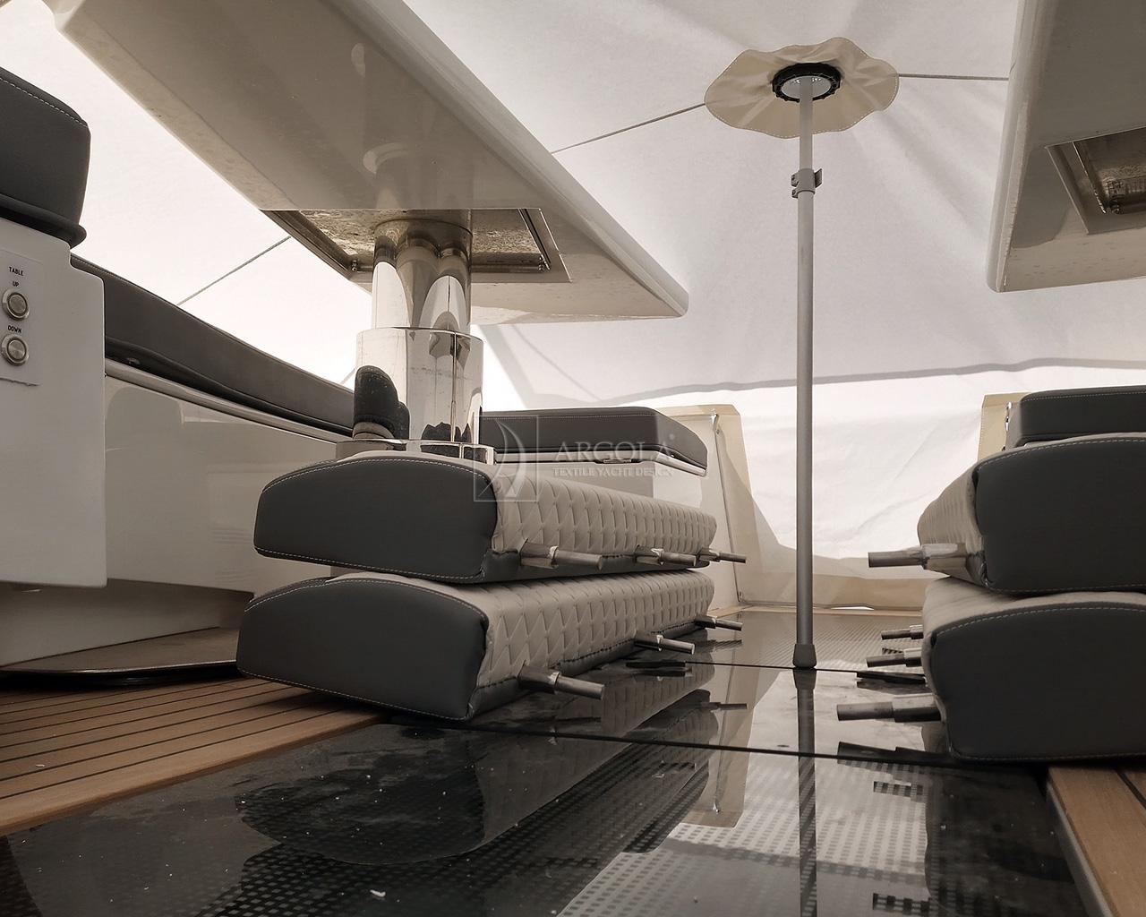 Awnings and covers on yachts play a major role in providing protection in all weather conditions for the owners, guests and crew. The design of the awning itself is what gives the boat its identity, and the complementarity of style between awnings, covers and cushions allows crew and guests to sail in comfort and style.